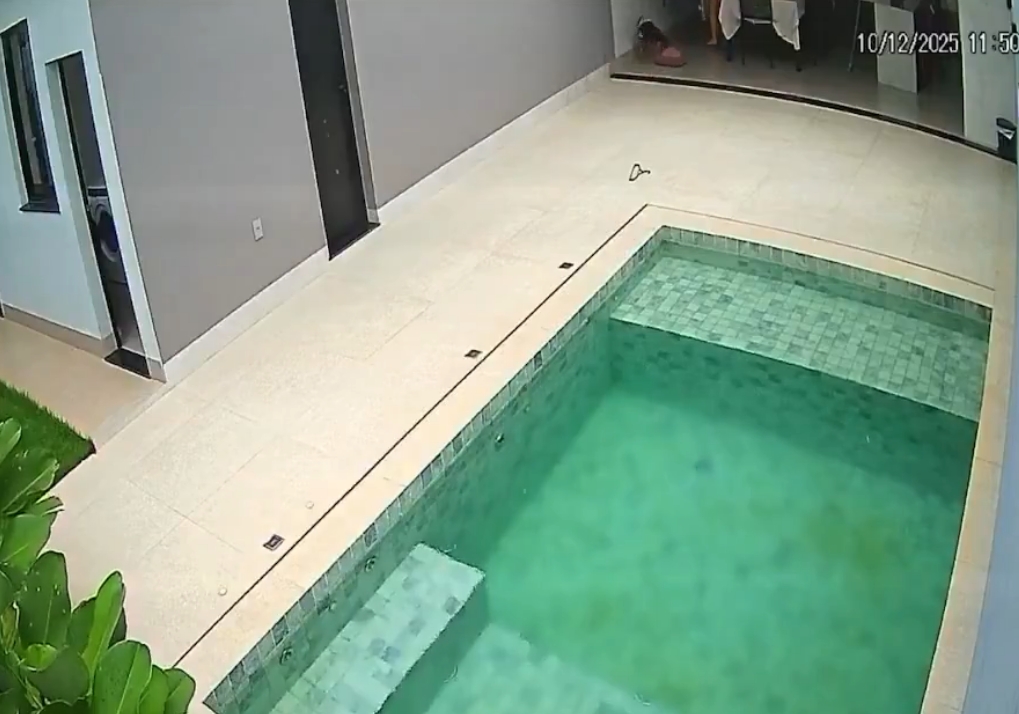 *Una cámara captó el momento en que el lomito busca refugio mientras su dueño retira la ropa del tendedero ante la lluvia.