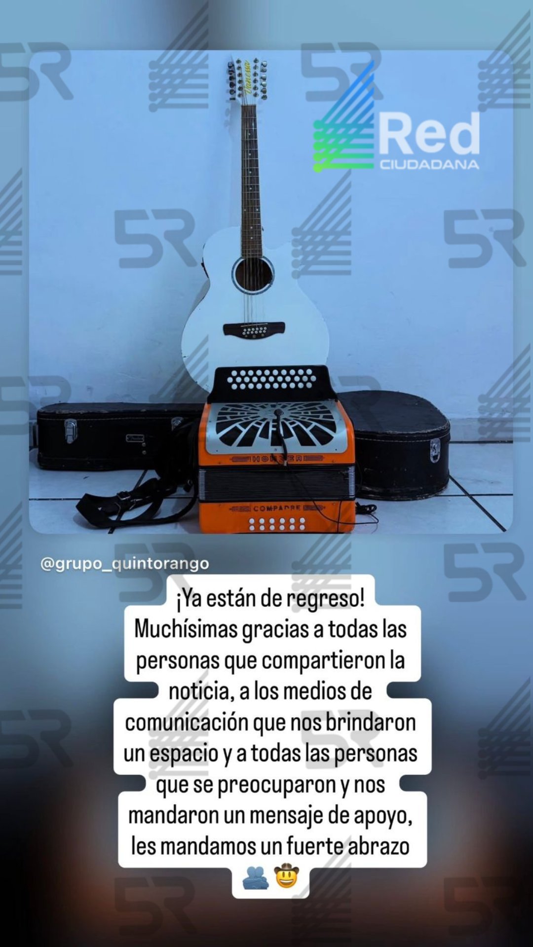 A través de sus redes sociales, los integrantes dieron a conocer que, gracias a la difusión del caso y al apoyo recibido por parte de la ciudadanía, fue posible dar con el paradero de los instrumentos.