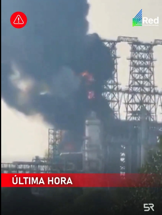 *Una intensa columna de humo es visible desde las instalaciones del complejo petrolero.