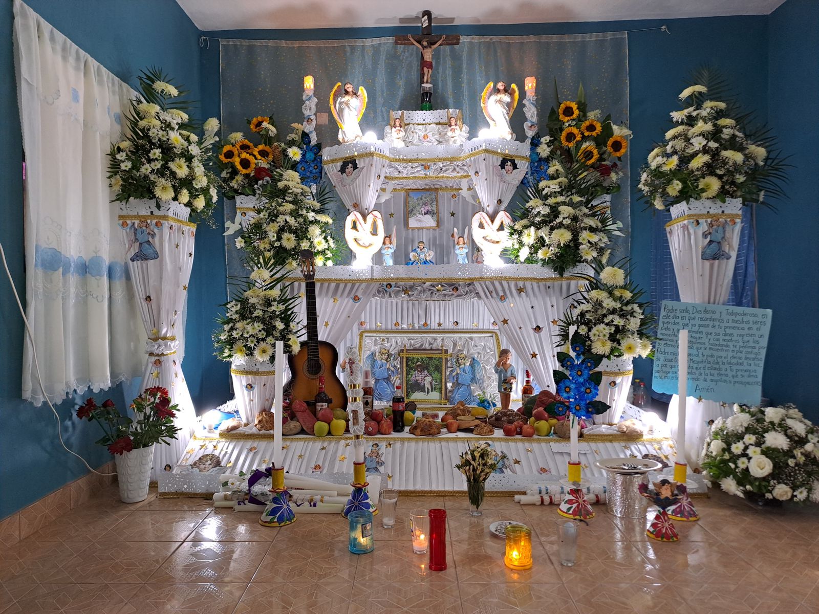 Construidos con madera y tela blanca, los altares están divididos en tres niveles, representando lo terrenal, el inframundo y el cielo. Cada altar es una obra maestra que refleja la dedicación y respeto de los pobladores hacia sus difuntos.