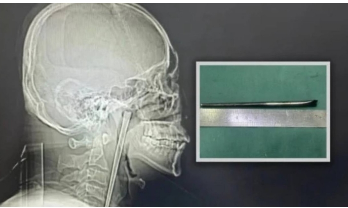 Internacional.- Un hombre de apellido Wang, originario de la provincia de Liaoning, en China, vivió durante ocho años con un palillo de metal de aproximadamente 12 centímetros atorado en la garganta, debido a su temor a someterse a una cirugía.