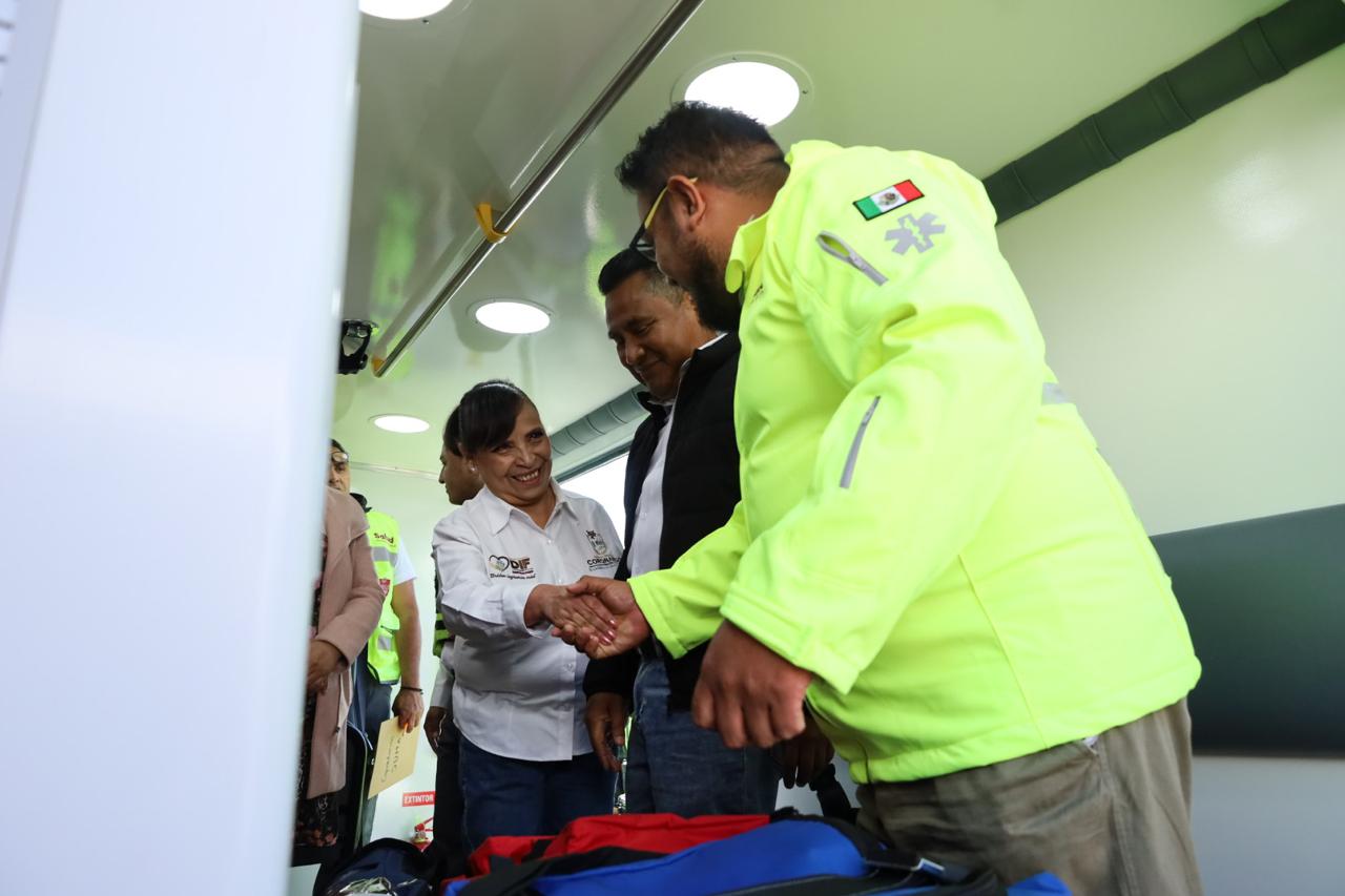 *El Sistema de Urgencias Médicas Avanzadas entregó una ambulancia equipada al Ayuntamiento de Coronango para fortalecer la atención de emergencias médicas.