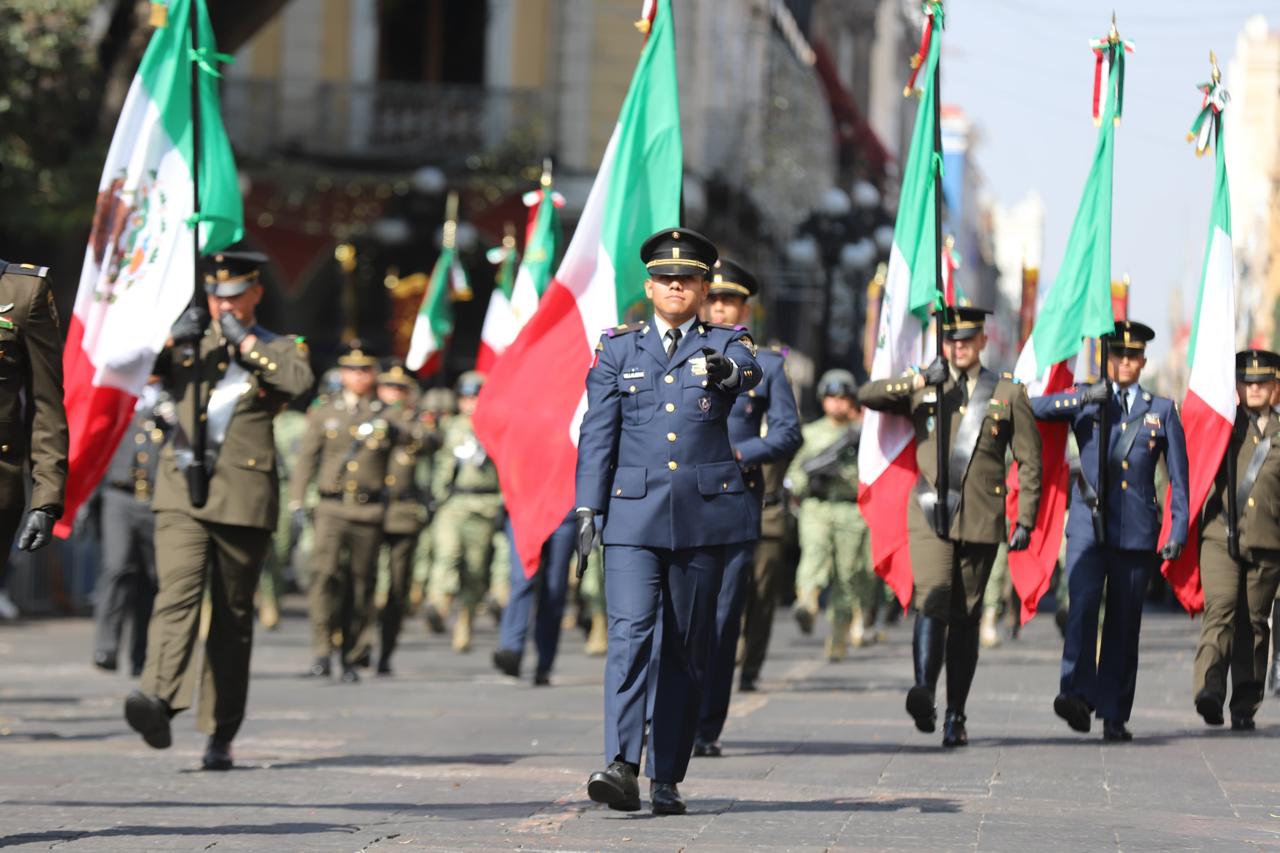 Puebla, Pue. – Con motivo del 115 aniversario de la Revolución Mexicana, más de 3 mil 400 participantes entre estudiantes, fuerzas armadas y corporaciones de seguridad recorrieron 2 kilómetros en el centro de Puebla en un desfile cívico-militar que se desarrolló sin incidentes.
