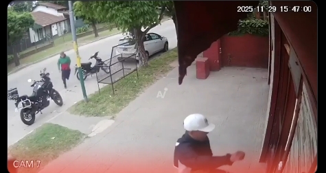 Un motociclista en Mar de Plata, Argentina, logró evitar un ataque al detectar que dos jóvenes intentaban emboscarlo. Las cámaras de seguridad registraron el momento en que el hombre se percata del riesgo, corre hacia una panadería cercana y cierra la puerta rápidamente para resguardarse.