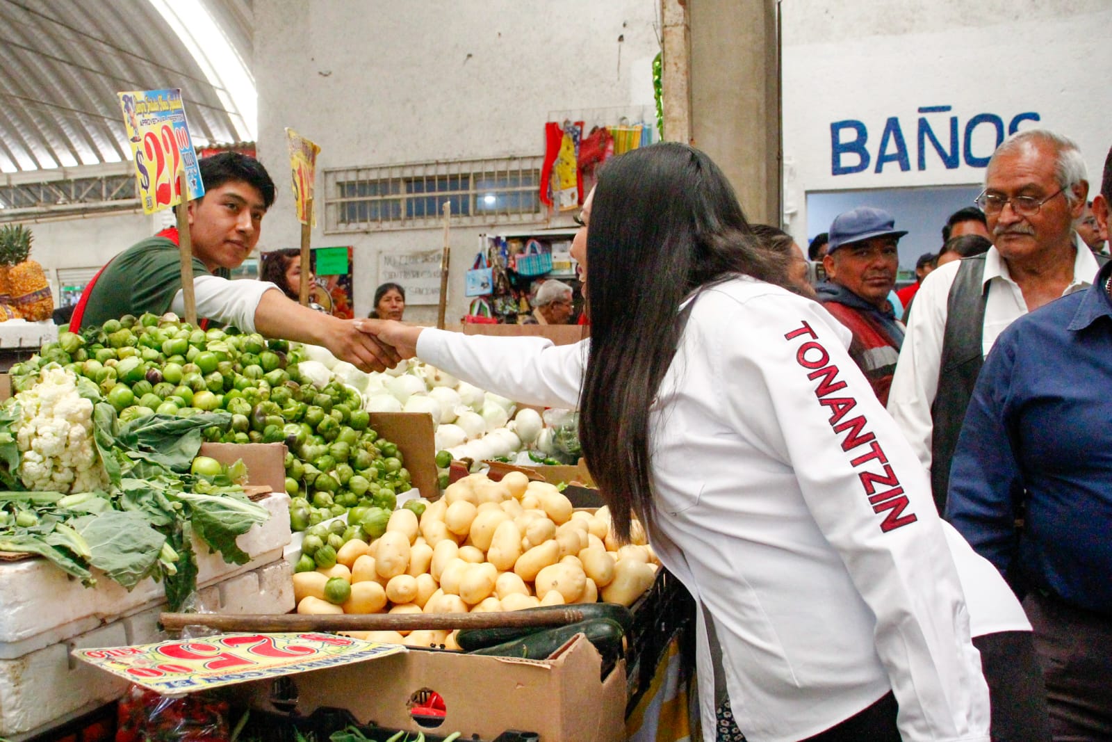 *Tonantzin Fernández recorrió el tianguis de Santiago Mixquitla para atender necesidades y mejorar la infraestructura en San Pedro Cholula.