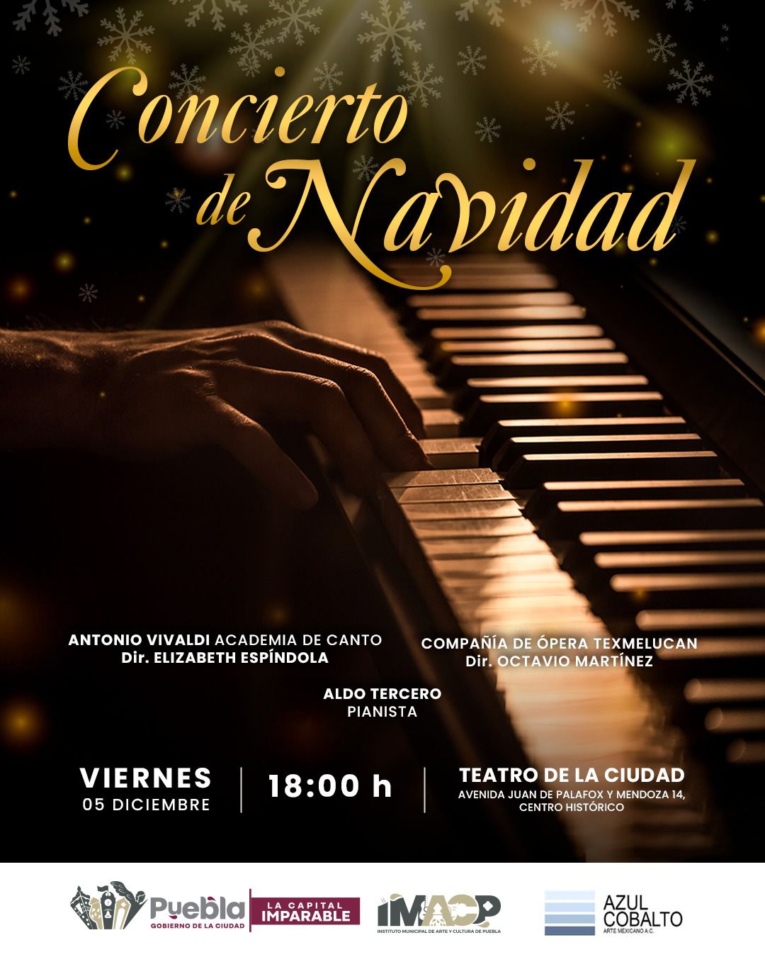 Puebla, Pue.- La música navideña tendrá un espacio especial en Puebla, luego de que el Instituto Municipal de Arte y Cultura (IMACP) anunciara la realización del Concierto de Navidad este viernes 5 de diciembre a las 18:00 horas en el Teatro de la Ciudad, ubicado en la avenida Juan de Palafox y Mendoza, en el Centro Histórico.
