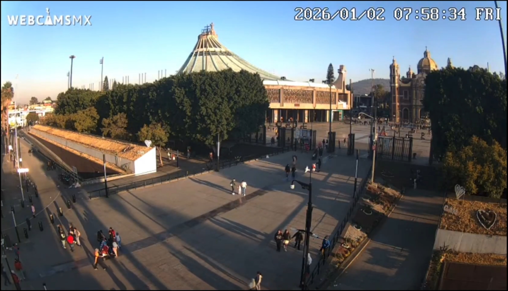 Ciudad de México. — El sismo registrado la mañana de este viernes quedó captado a través de cámaras web instaladas en la Basílica de Guadalupe, donde se observa el momento exacto en que se activa la alarma sísmica a las 07:58:30 horas.