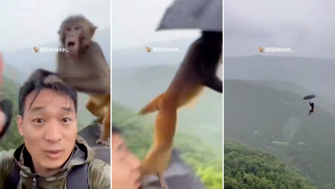 *Un clip generado por inteligencia artificial muestra a un mono robando un paraguas y lanzándose al vacío; el video suma millones de vistas.